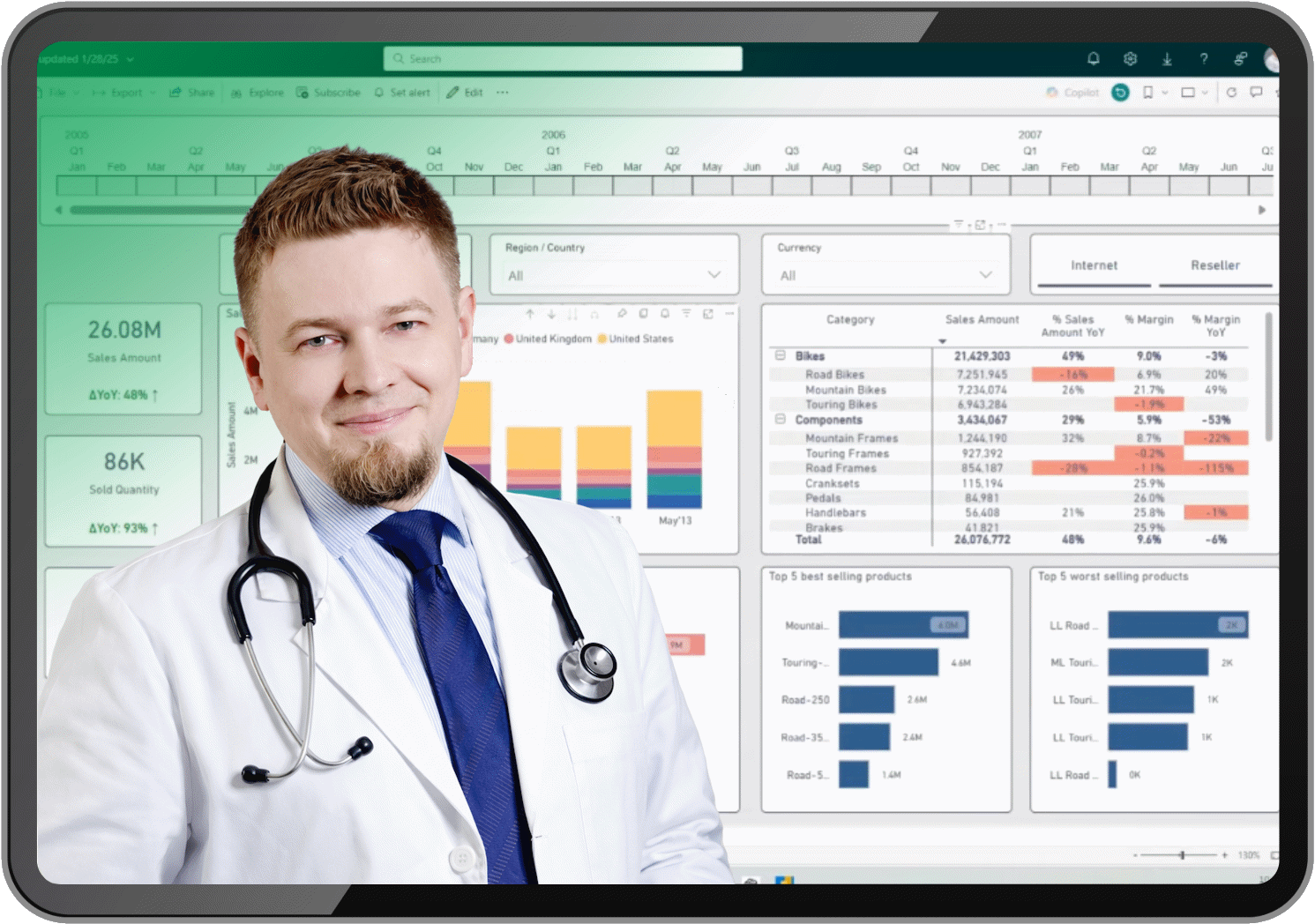 Zespół Pogotowie BI tworzą eksperci z wieloletnim doświadczeniem w analizie danych, raportowaniu i wdrażaniu Power BI w organizacjach różnej skali. Łączymy wiedzę techniczną z praktycznym podejściem biznesowym, dzięki czemu nasze szkolenia przekładają się na realne efekty i lepsze decyzje oparte na danych.